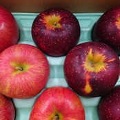独特な色のりんごで果肉は硬く、パリパリとした食感です。
