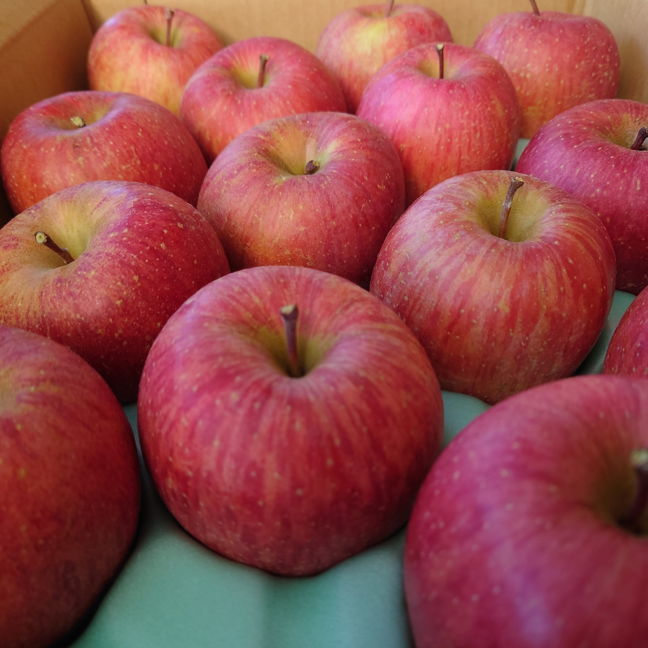 春先の凍霜害、雨量、台風等で着色不良、サビ、斑点、枝ずれがあり贈答用からはねられてしまったご家庭用のサンふじです。皮を剥いて食べていただければ美味しく食べていただけます。